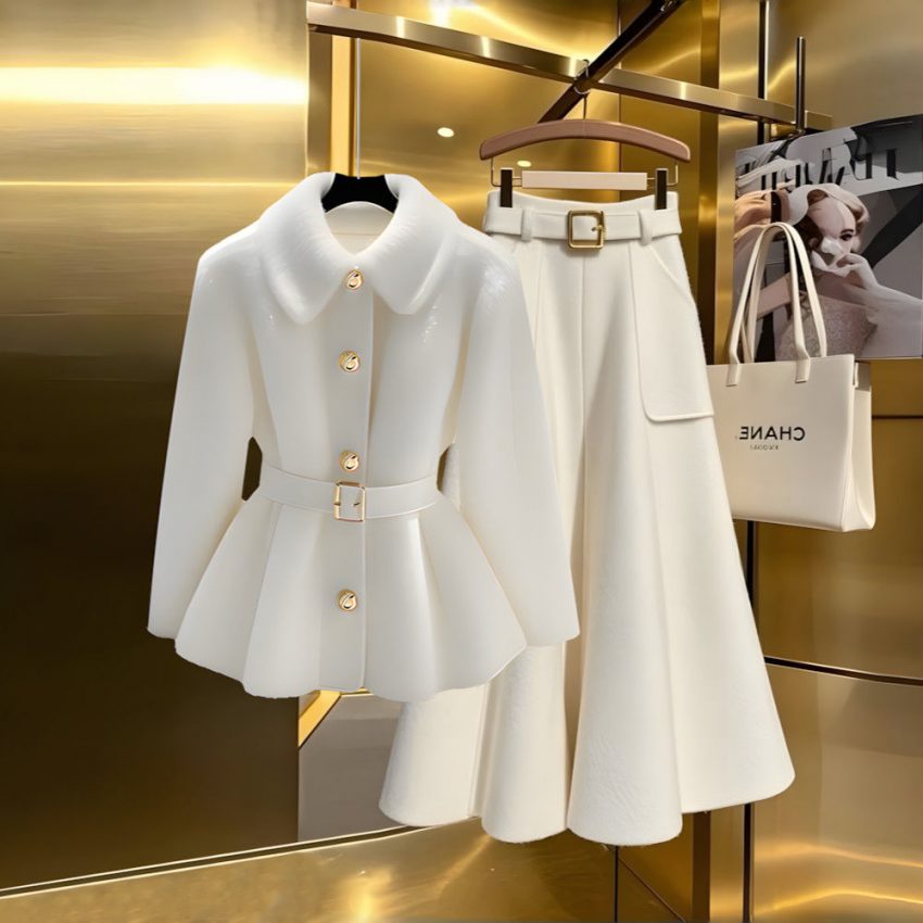 Winter Coat Wool Skirt Set